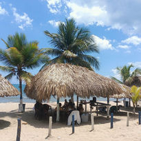 Nuestra cabaña está dotada con sala desde donde puedes apreciar la playa y disfrutar de la suave brisa con familiares y amigos, tomando un delicioso coco loco o el licor de tu gusto